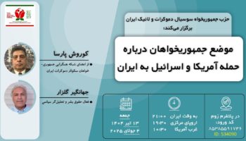 جمعه ها با شما بحث آزاد حزب جمهوریخواه سوسیال دموکرات و لائیک ایران (عضو رسمی جبهه ملی ایران) موضوع: به مناسبت در گذشت شیدان وثیق و روز جهانی