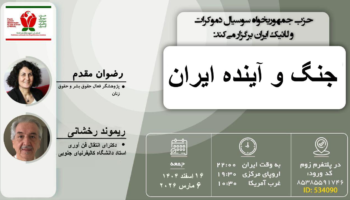 جمعه ها با شما بحث آزاد حزب جمهوریخواه سوسیال دموکرات و لائیک ایران (عضو رسمی جبهه ملی ایران) موضوع: جنگ و آینده ایران سخنرانان: رضوان مقدم و ریموند