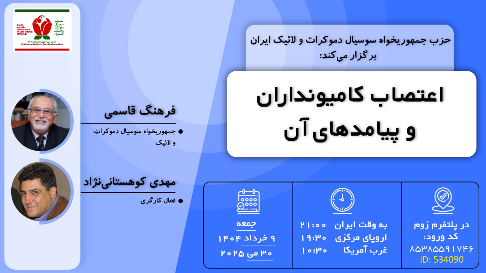 سخنرانان: مهدی کوهستانی و فرهنگ قاسمی