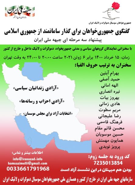 حزب سوسیال دموکرات و لائیک ایران – همسازی ملی جمهوریخواهان از ایرانیان دعوت می کند در جلسه سخنرانی و بحث آزاد آدینه ها مشارکت کنند. ورود برای همه