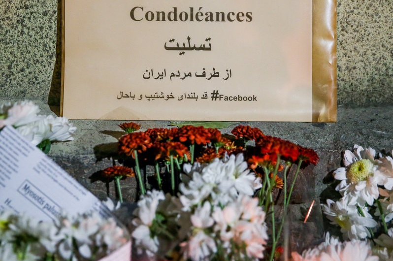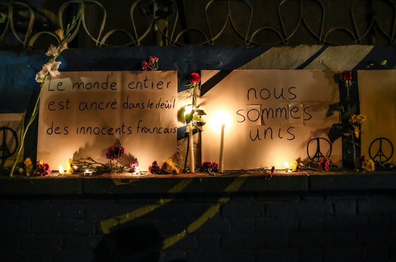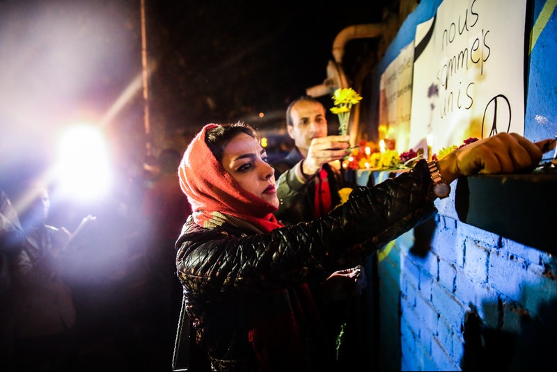 تعدادی از شهروندان ایرانی با حضور در برابر سفارت فرانسه در تهران و اهدای گل و روشن کردن شمع، با مردم فرانسه که عزادار حملات تروریستی شب گذشته هستند، ابراز همدردی کردند.