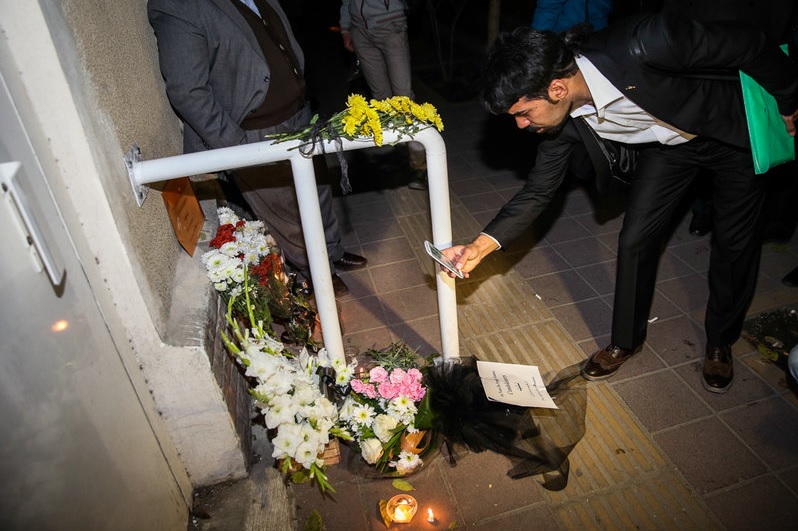 جمعی از ایرانی ها به نشانه تسلیت، مقابل سفارت فرانسه در تهران تجمع کردند.