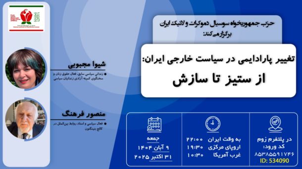 گرداننده جلسه: اسفندیار خلف عضو نهاد راهبردی حزب جمهوریخواه سوسیال دموکرات و لائیک ایران