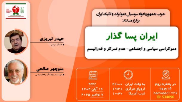 جمعه ها با شما بحث آزاد حزب جمهوریخواه سوسیال دموکرات و لائیک ایران (عضو رسمی جبهه ملی ایران) موضوع: به مناسبت در گذشت شیدان وثیق
