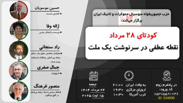 جمعه ها با شما بحث آزاد حزب جمهوریخواه سوسیال دموکرات و لائیک ایران (عضو رسمی جبهه ملی ایران) موضوع: به مناسبت در گذشت شیدان وثیق