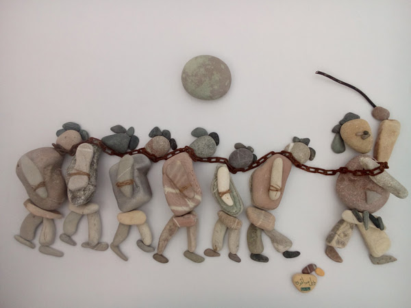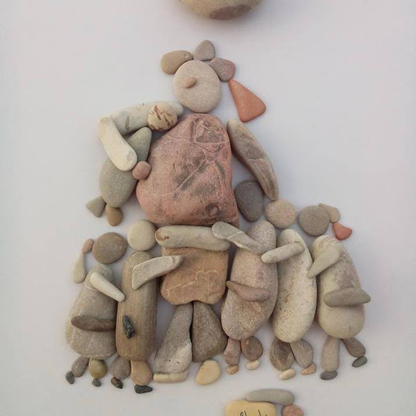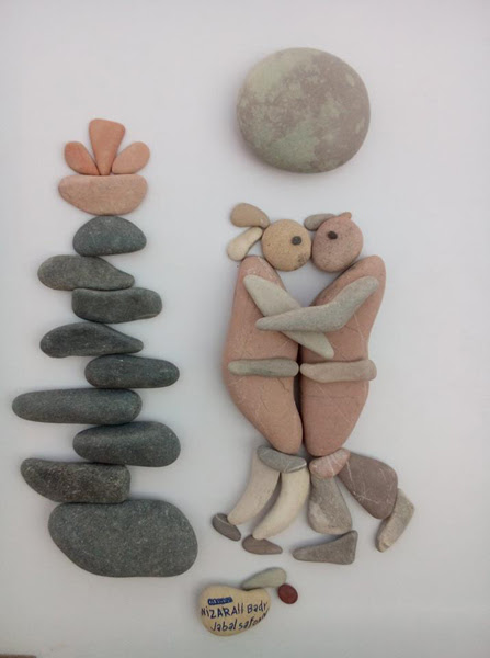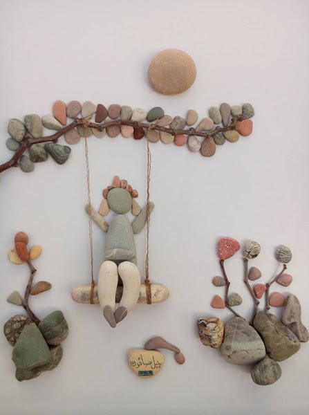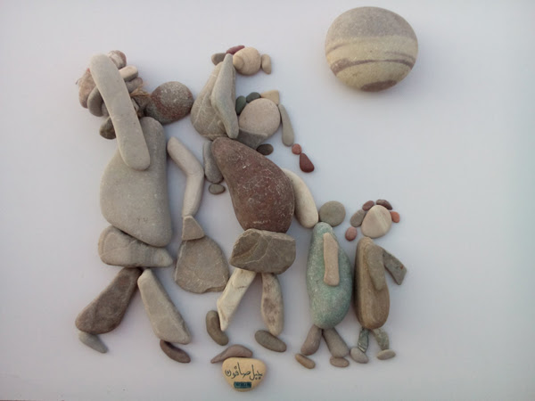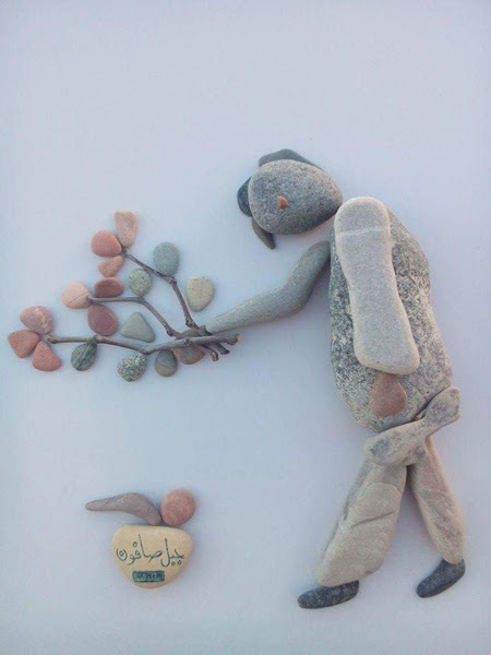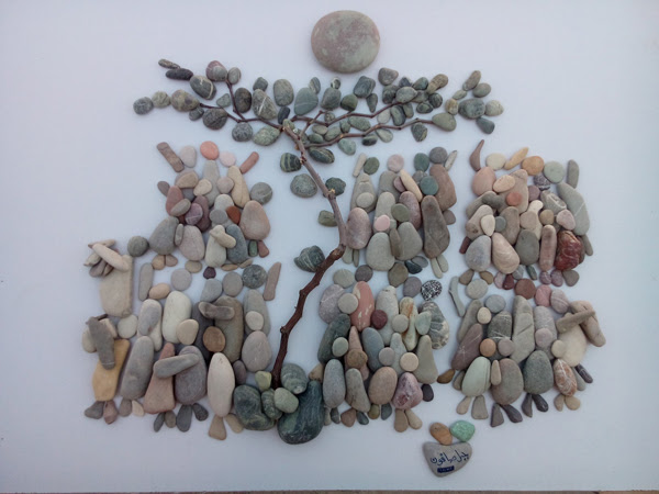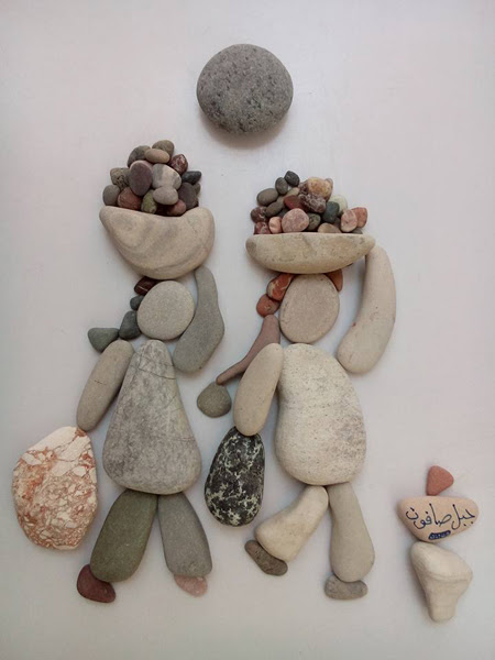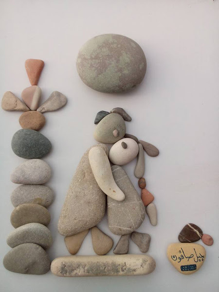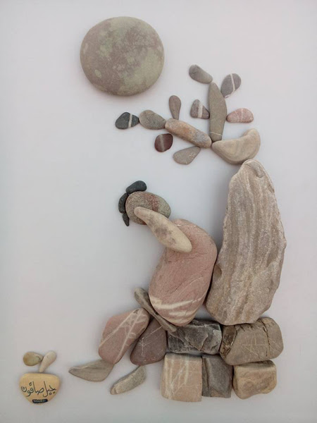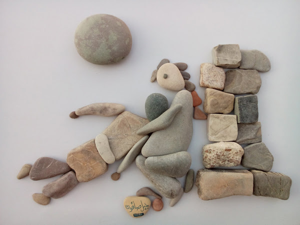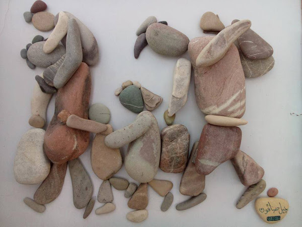 این شاهکار هنری یک پناهجوی سوریه در بندر کاله در شمال فرانسه است که وضعیت پناهندگان را با سنگهای رودخانه و دریا به تصویر درآورده.