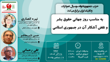 جمعه ها با شما بحث آزاد حزب جمهوریخواه سوسیال دموکرات و لائیک ایران (عضو رسمی جبهه ملی ایران) موضوع: به مناسبت روز جهانی حقوق بشر و نقض آشکار